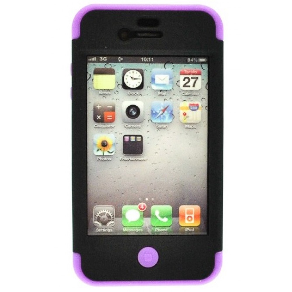 Protect your iPhone 4/4s with this Armoured Rubberished shell in Black and Purple. This fabulous case will protect your valuable iPhone from knocks and scraps and keep it looking good.